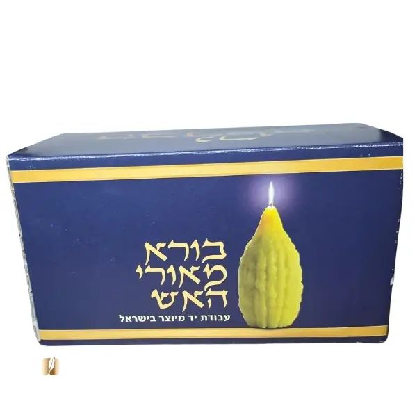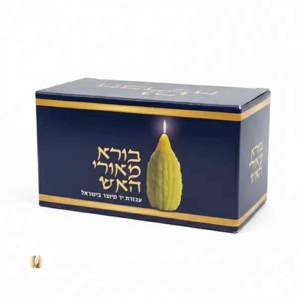 נר הבדלה בצורת אתרוג, בעיצוב ייחודי ומכובד שמוסיף יופי וערך למעמד ההבדלה במוצאי שבת. הנר מעוצב בהשראת האתרוג המסורתי, עם תשומת לב לפרטים ולמראה נקי ומרשים המתאים לכל שולחן הבדלה.