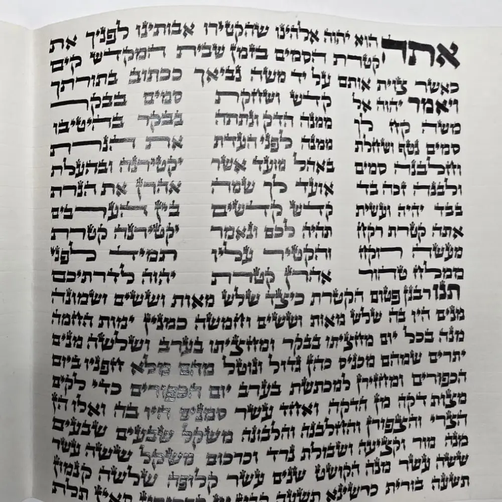 תמונה של פיטום הקטורת כתובה על קלף כמו כן תוכלו למצוא אצלנו באתר 'לומדים שופס' עוד המון תשמישי קדושה מהודרים, כגון: מגילת אסתר מהודרת על קלף, תפילין מהודרות, מזוזות מהודרות ועוד…