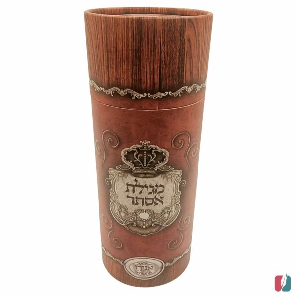 קופסא עומדת למגילה, עם עיטורים יפים, חזקה ויציבה.